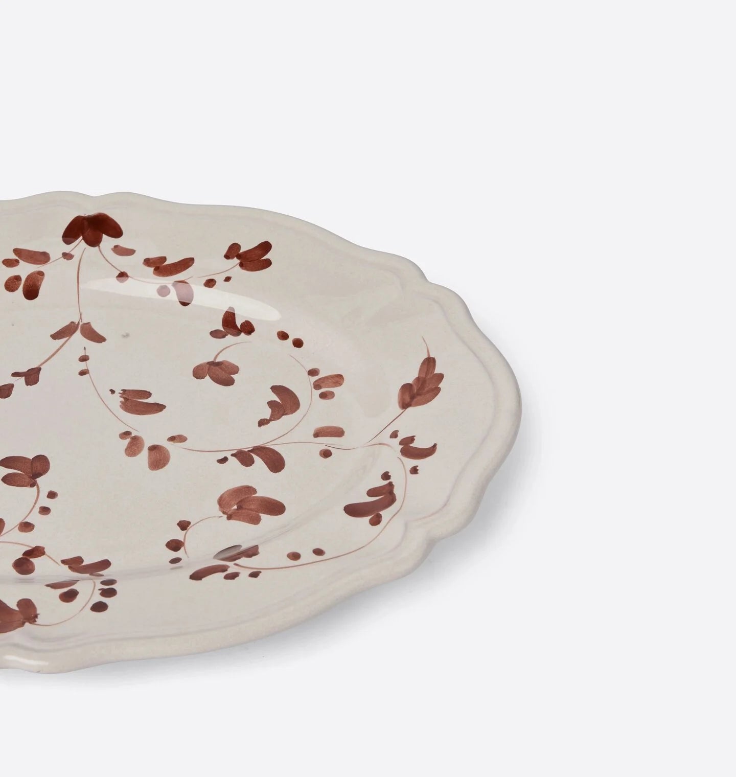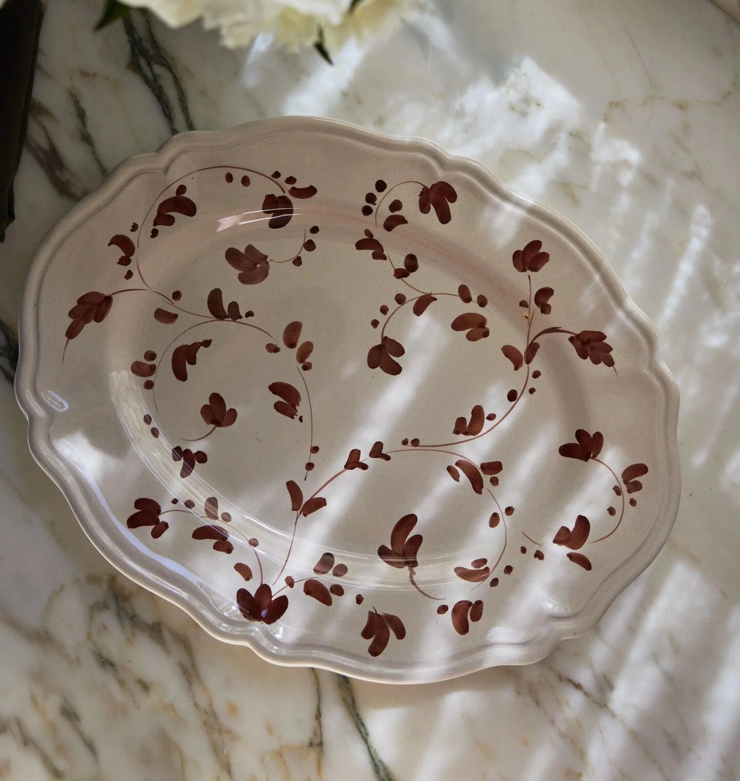 Introducing Flora, a timeless beauty, an heirloom in the making. The Flora Collection is born from Antonello Radi’s deep passion for antiques—a love he has cultivated for years as an avid collector. His home in Umbria, filled with storied ceramics, served as the inspiration for this collection. With shapes reminiscent of 18th-century central Italian plates and delicate floral motifs, Flora is an ode to romance, simplicity, and the timeless beauty that defines Il Buco Vita. Each piece is handmade and hand painted in Italy from red terracotta. The Marrone color has been made in collaboration with Shoppe Amber Interiors