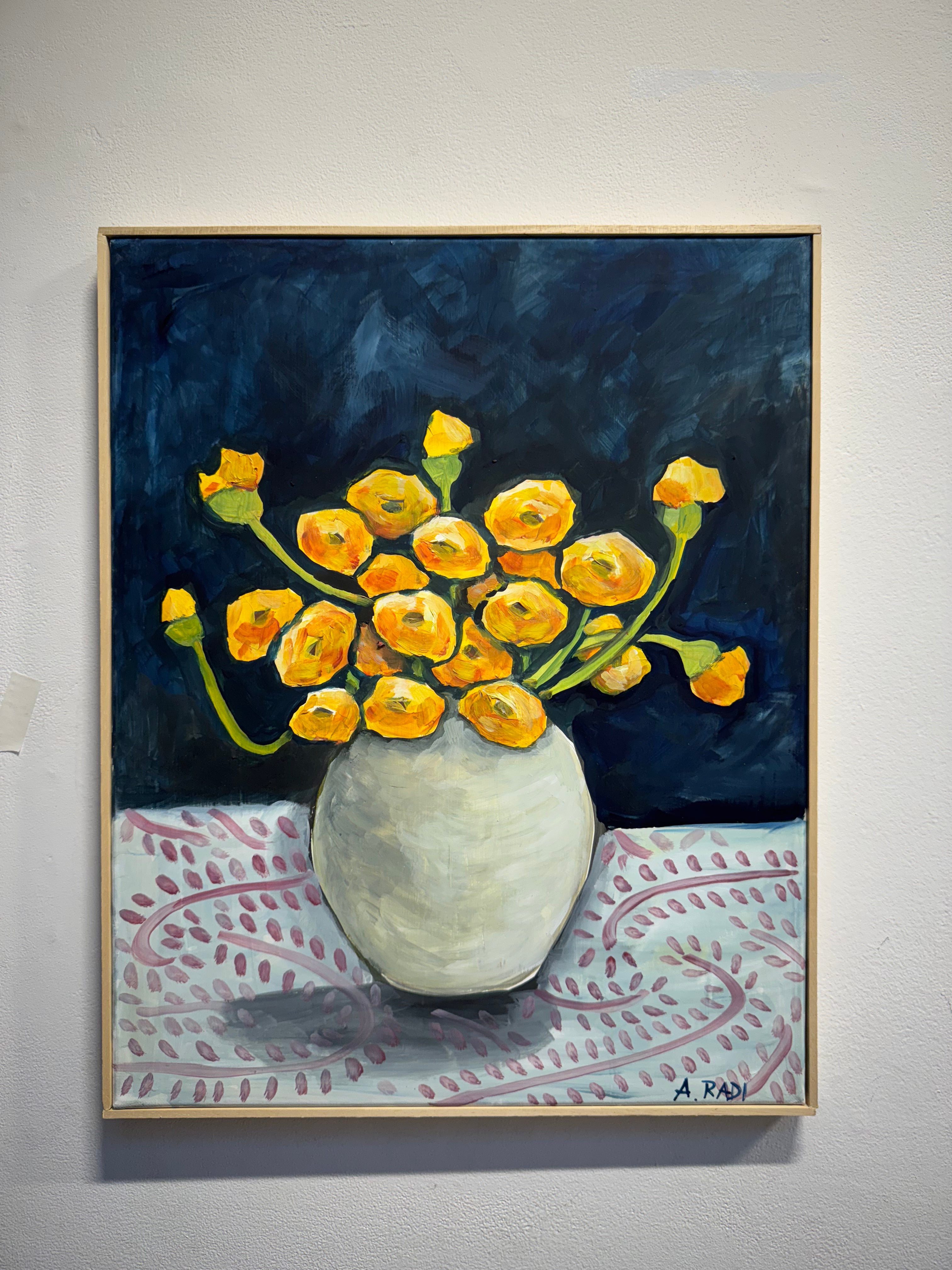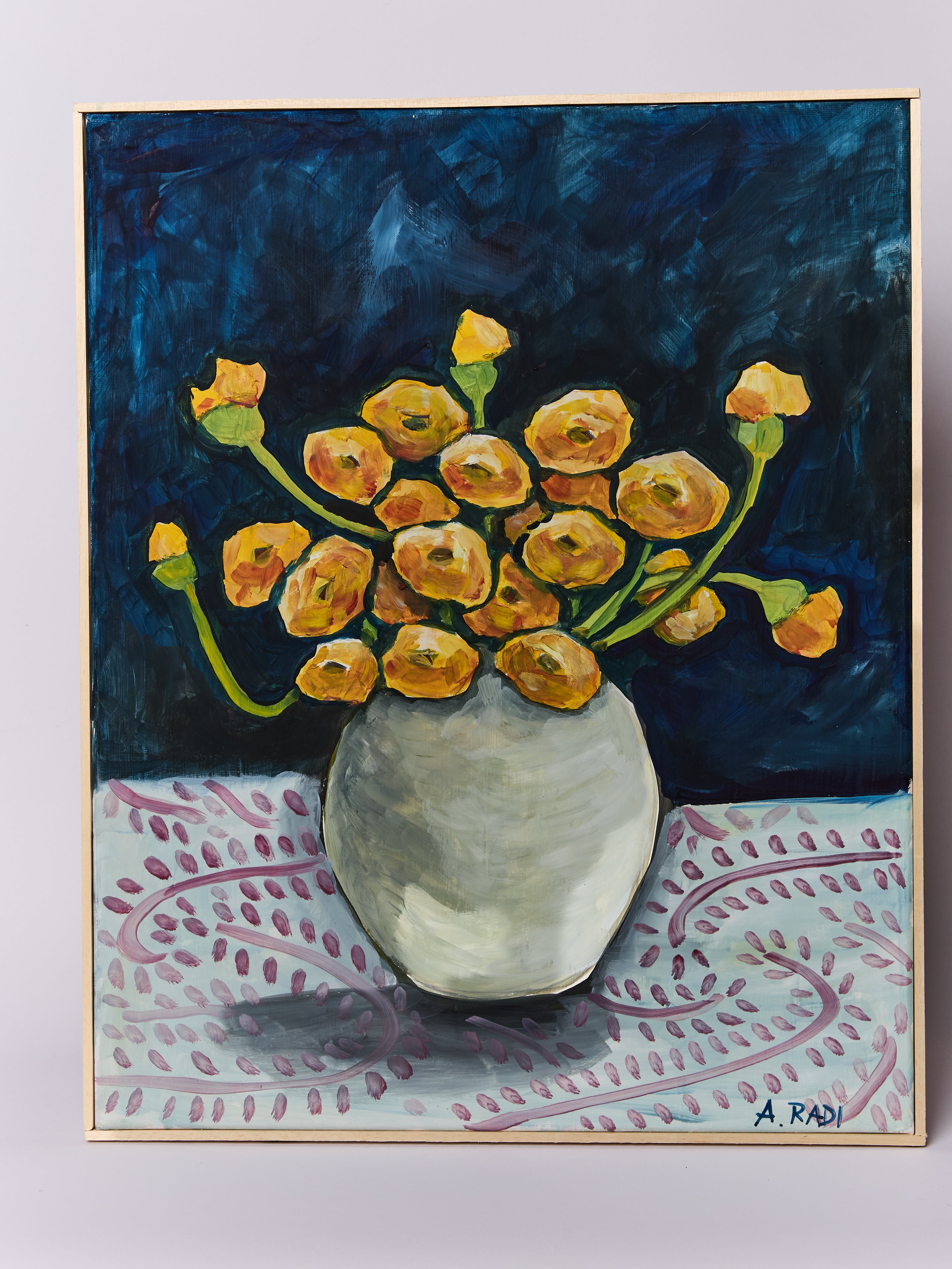 Original still life oil painting of ranunculus by Italian artist and Vita co-founder, Antonello Radi. Please contact our store directly for more information. Email vitainfo@ilbuco.com Dimensions: 41 cm w x 51 cm h