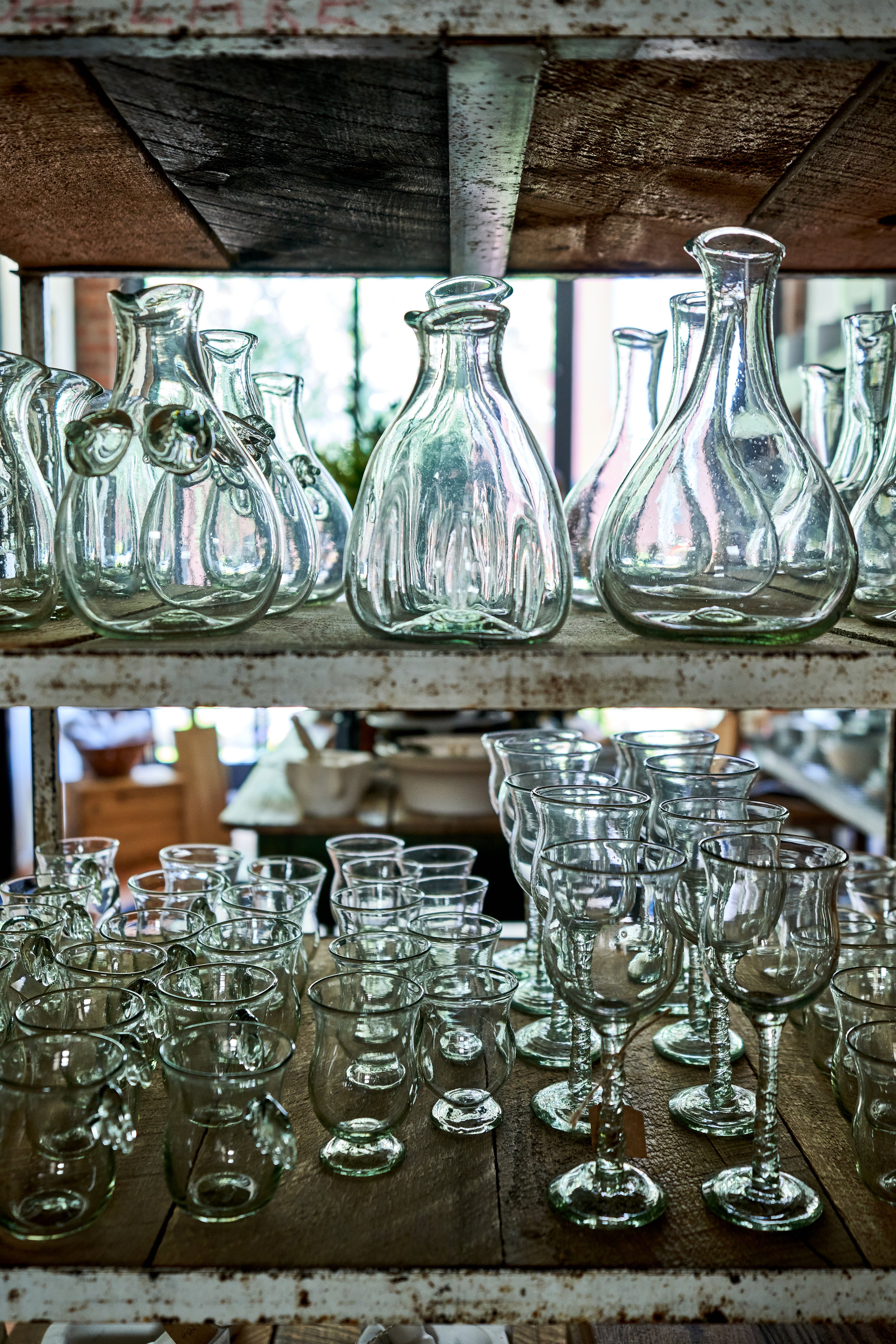The eccentric artist behind La Riccia literally breathes new life into discarded glass, transforming collected shards into functional sculptures. She hand blows each piece freely, without the use of molds, improvising shapes and playing to the mercurial qualities of the recycled glass. Using whatever she has on hand at that particular moment, the glass tone undulates from green to blue to gray encapsulating the beauty of the moment.