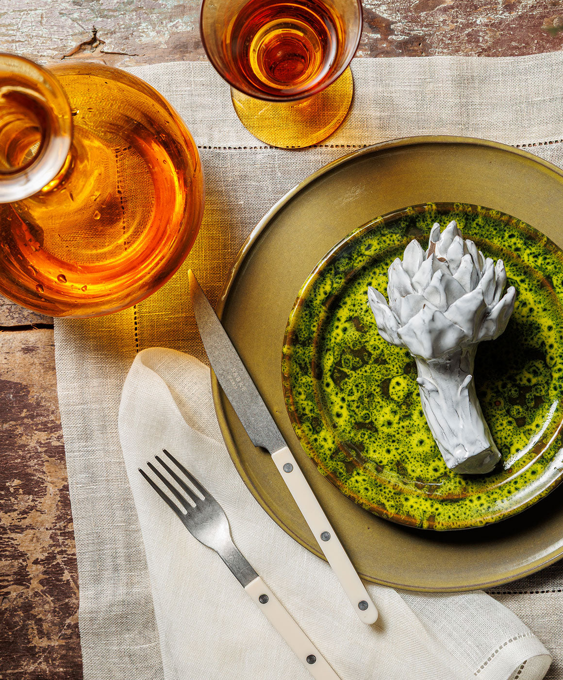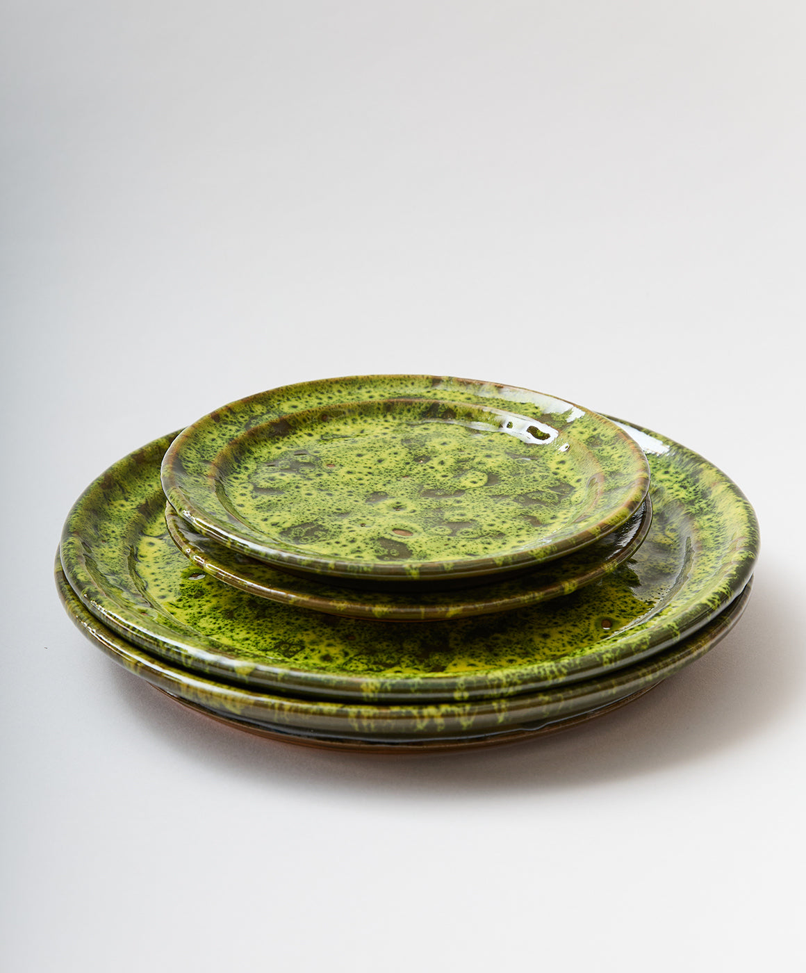 For six generations, Emanuele’s family has been producing ceramics in the same workshop in a small village in Marche, Italy. Committed to carrying on this heritage craft, the current generation relies on the same traditional methods as always, firing the terracotta clay in wood-fired ovens as their ancestors have done since 1851. The mastery of this process, set off with the village’s irreverent signature splattered glaze, results in this rustic collection, of which every piece is unique, an organic expression of the artisan and his craft.