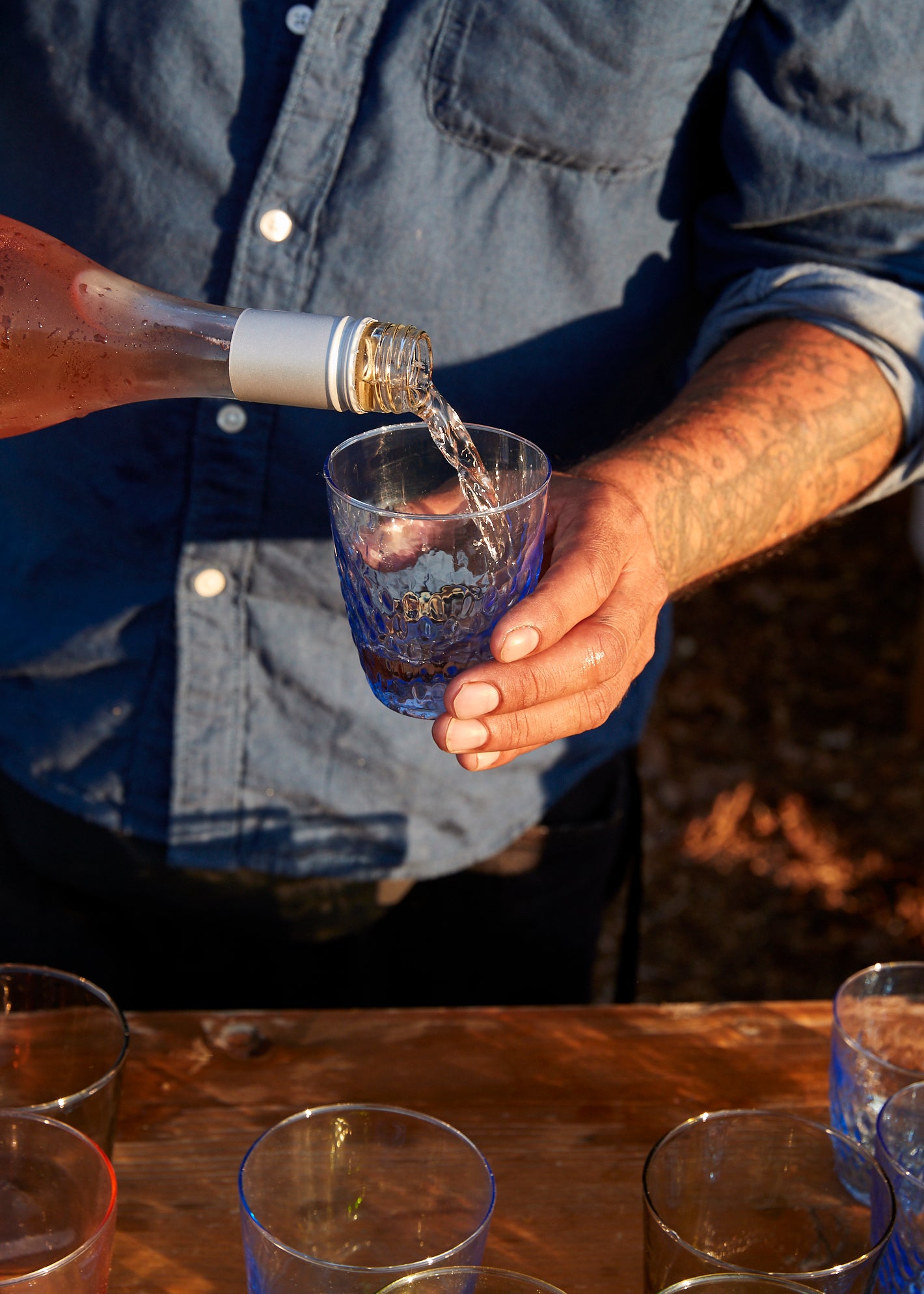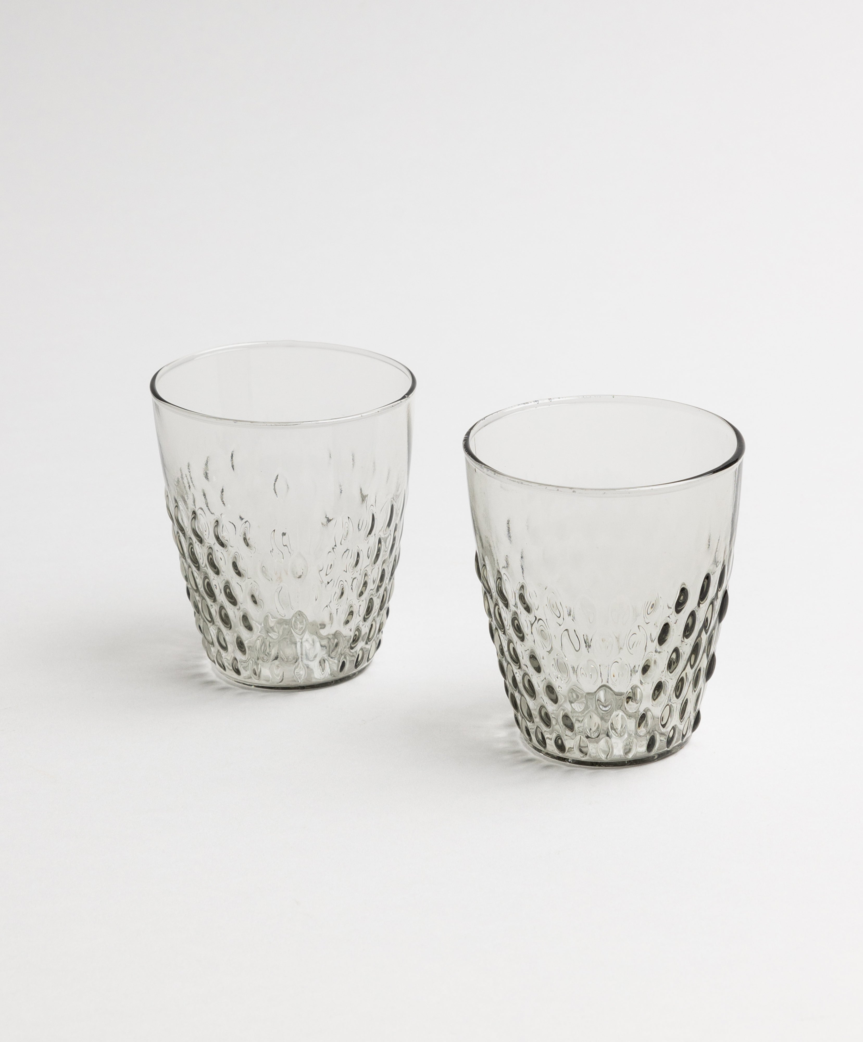 Handblown, rice patterned glasses. Can be used to serve water, juice, wine as well as cocktails, neat or on the rocks.