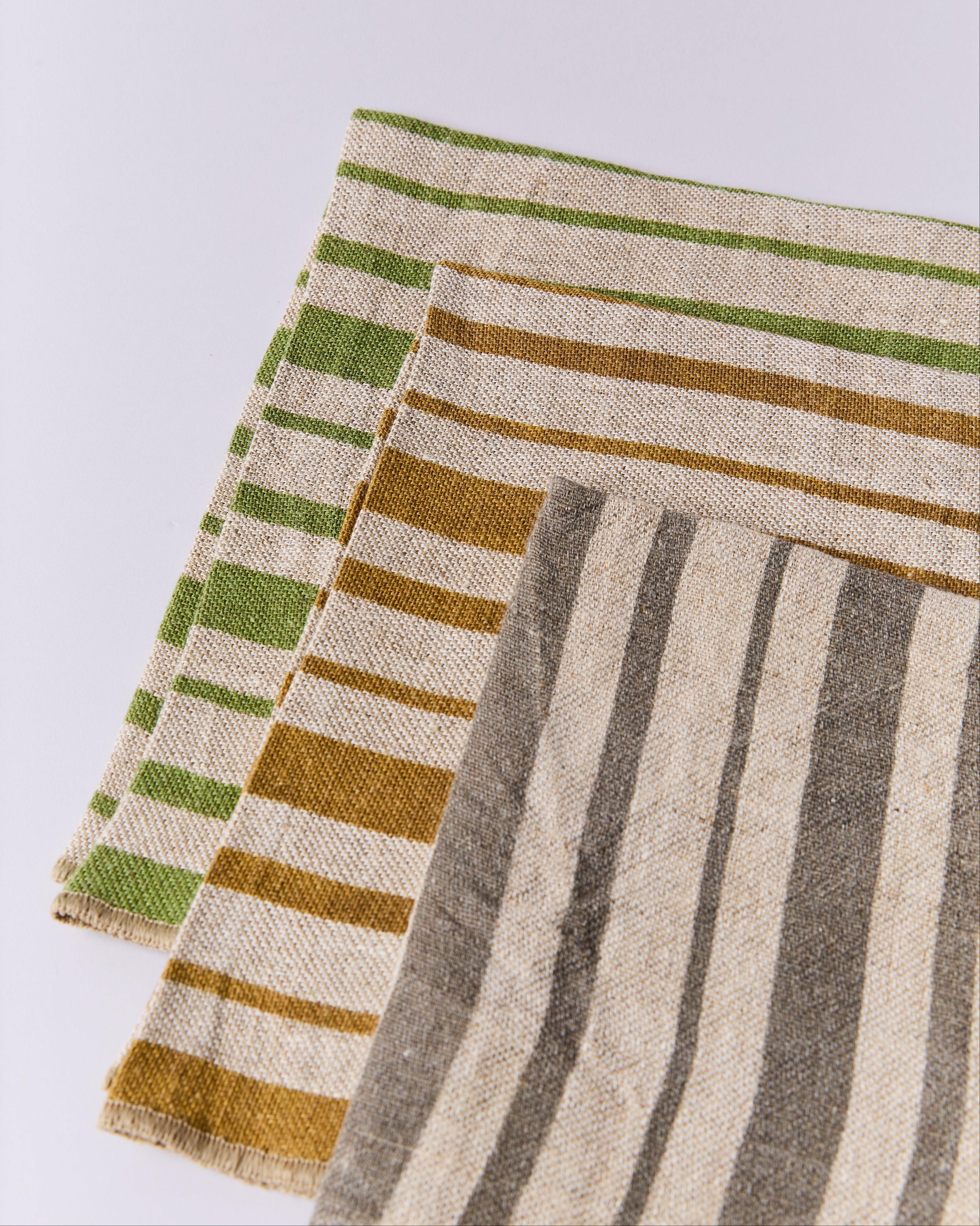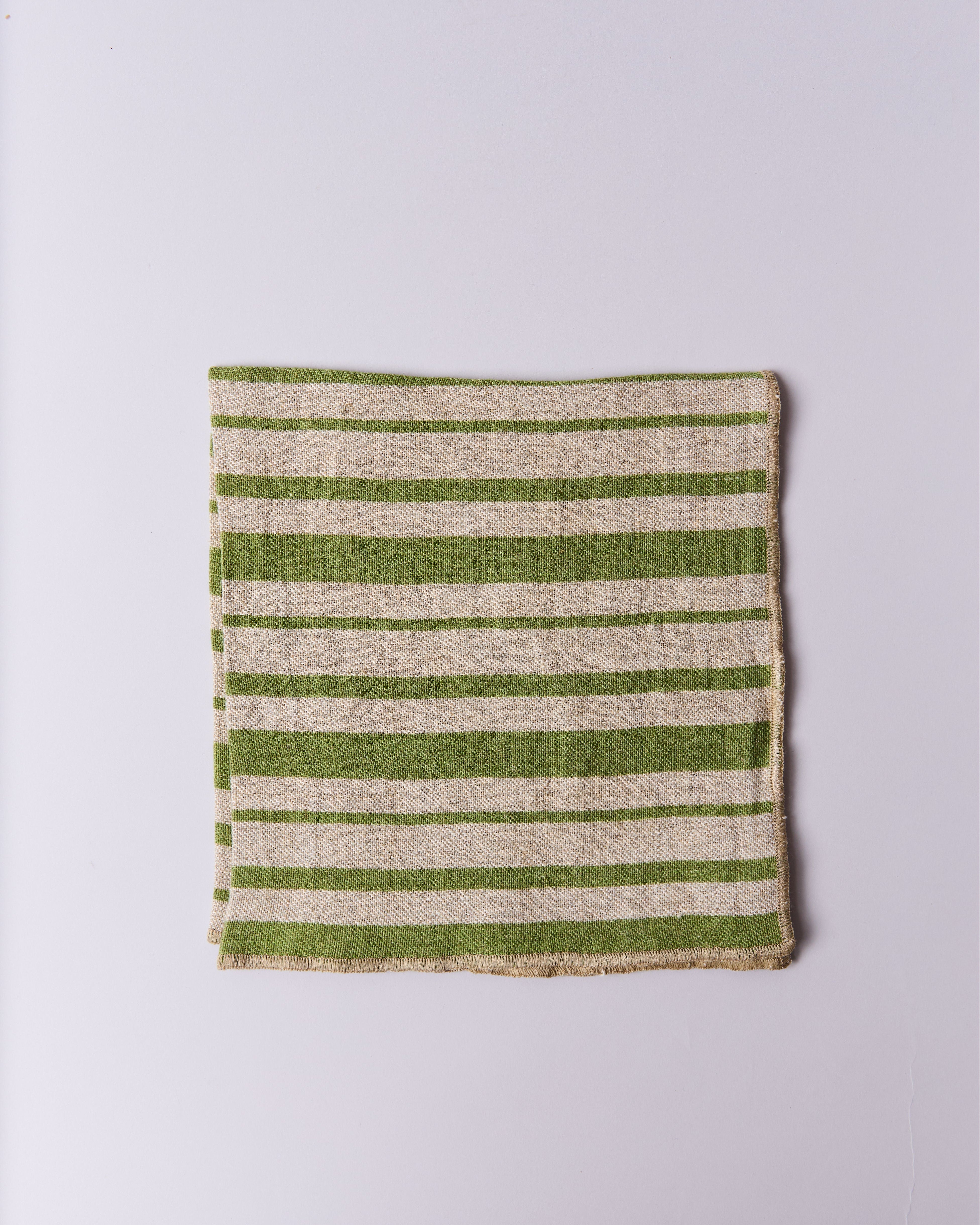 Constructed from pure hemp fibers and finished with water-based dyes in a striped motif, this napkin from the Leggera collection adds a layer of texture to any table setting.  20 inch x 20 inch