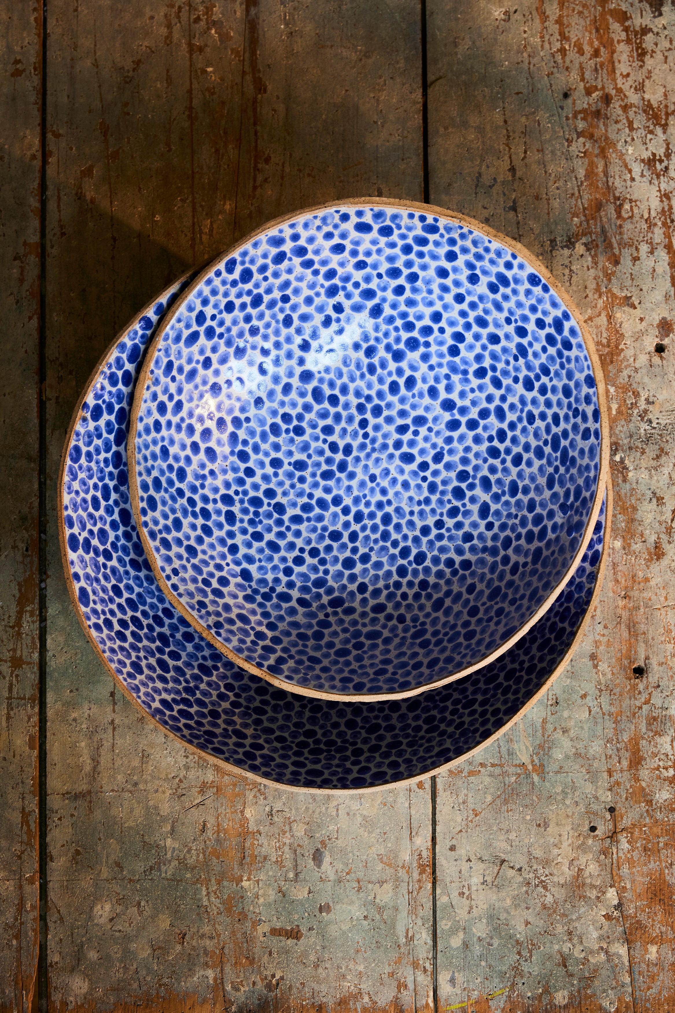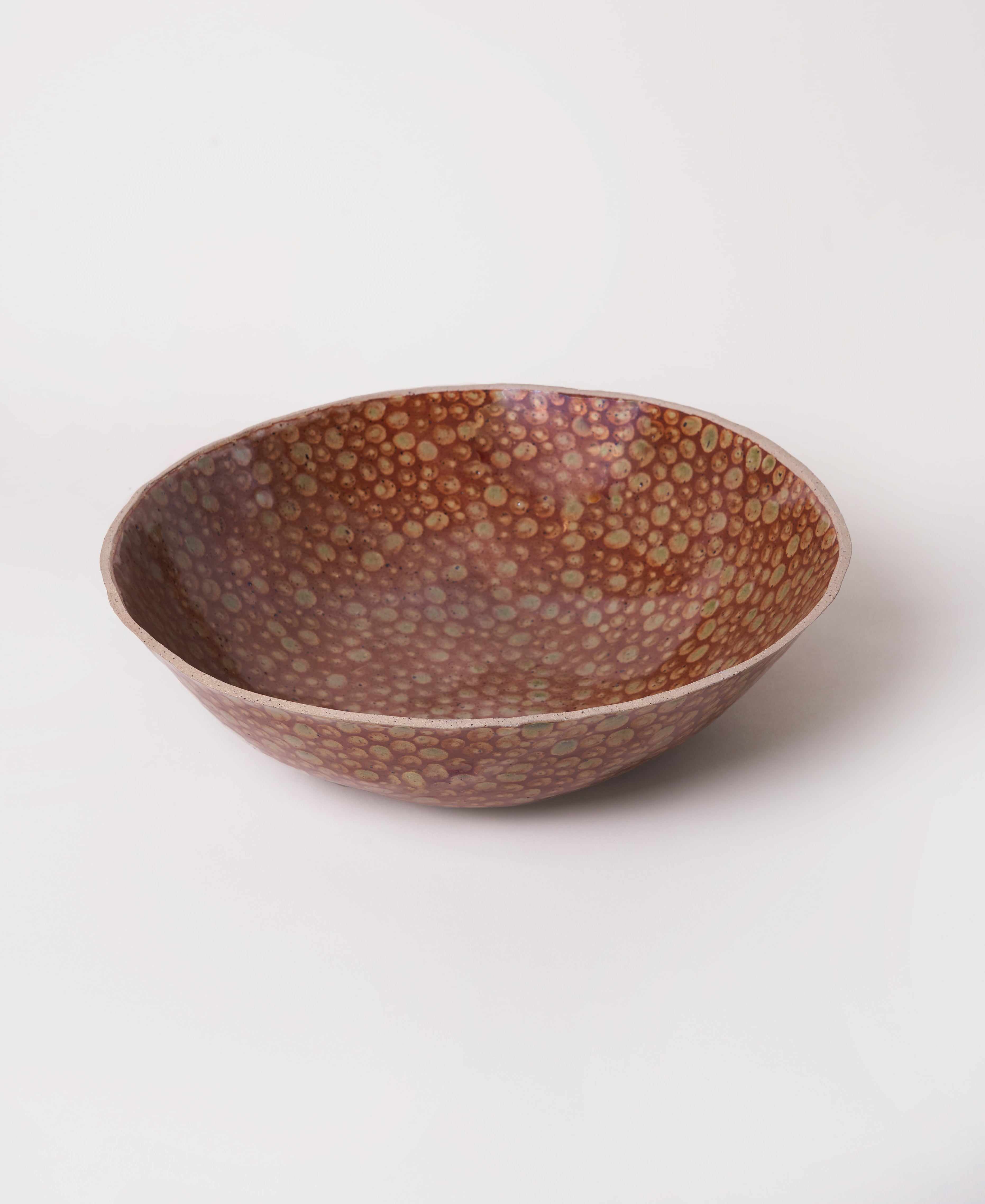 Stoneware fruit bowl hand thrown and glazed by New York artist Lana Kova. Dimensions: 8 1/2" diameter x 3 1/2" height.