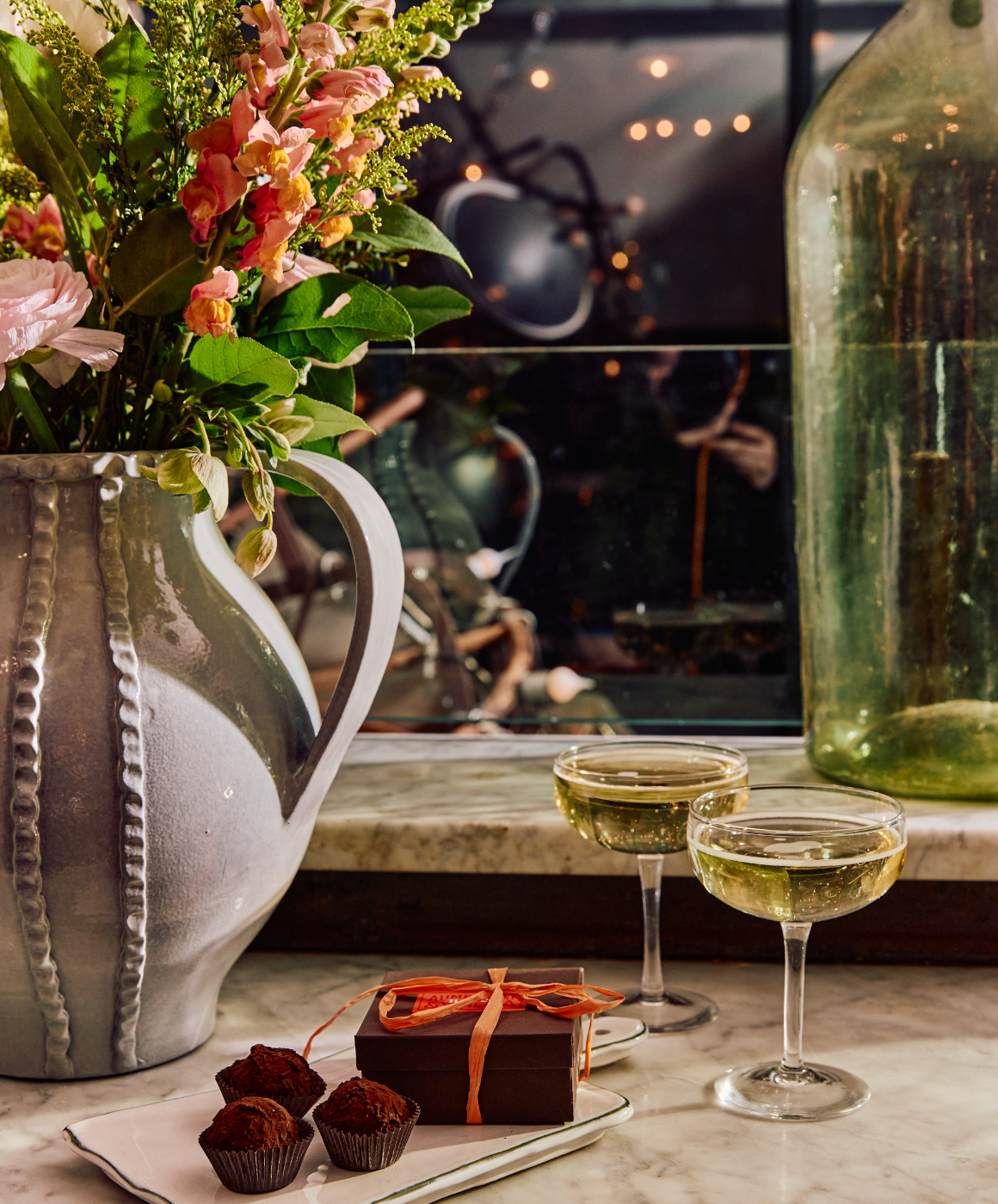 Chocolate truffles with il Buco Alimentari & Vineria's Biancolila Extra Virgin Olive Oil, heavy cream, 61% dark chocolate, butter, sugar. 4 pc per box. The perfect gift for the chocolate lover in your life!