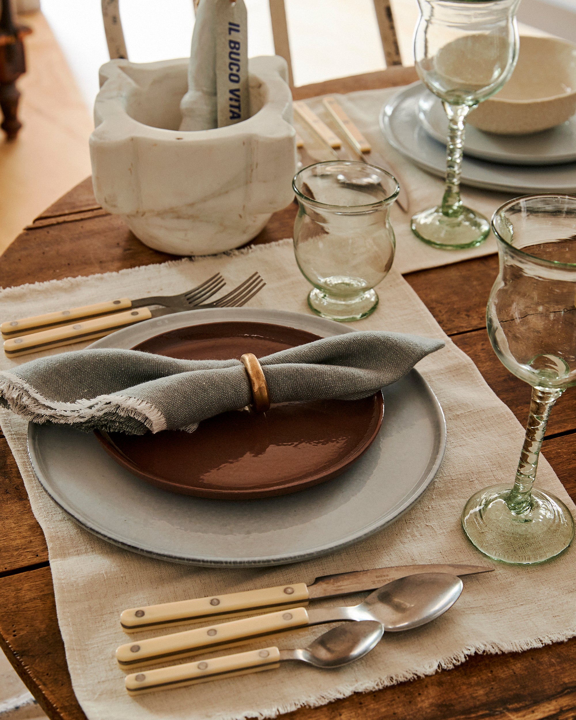Crafted from naturally dyed linen yarn, this Arcolaio Luce napkin features delicate fringe detailing that brings understated elegance to the table. The soft, tactile fabric is available in both subdued and vibrant hues, allowing you to layer color and texture into your dining aesthetic with refined simplicity.